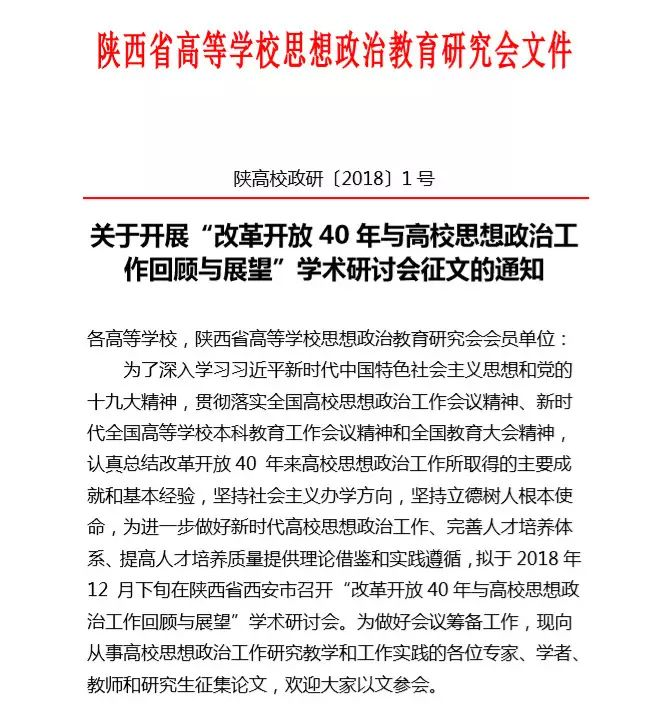 征稿 | 关于开展“改革开放40年与高校思想政治工作回顾与展望”学术研讨会征文