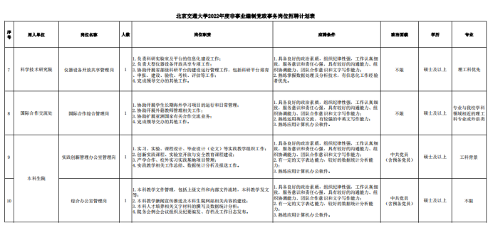附件:北京交通大学2022年度非事业编制党政事务岗位招聘计划表