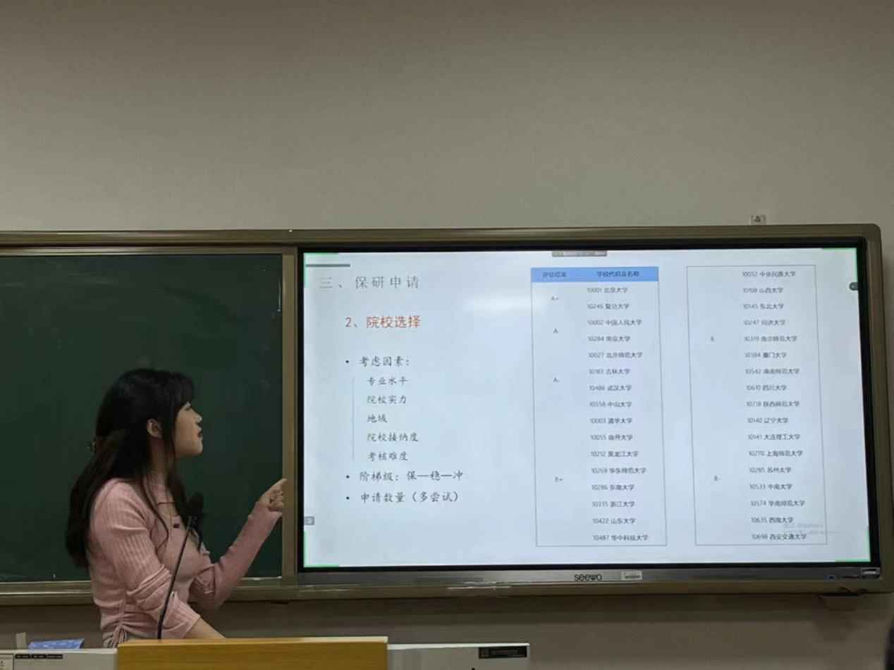 同学们纷纷表示,此次分享会让大家受益匪浅,不仅对保研相关政策、流程和准备事宜等有了详细的了解,学习思路进一步清晰,发展规划进一步明确,更从四位优秀学姐的经历中感受到了努力拼搏的力量,表示将在今后的学习生活中以她们为榜样,尽早规划出属于自己的追梦之路,并通过脚踏实地的不懈努力早日实现自己的青春梦想。