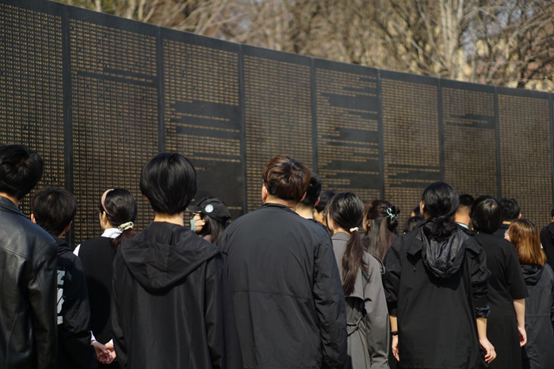 在烈士纪念广场,大家怀着沉重的心情,瞻仰由138块黑色花岗岩组成的抗美援朝烈士英名墙,深切感受战争的残酷与和平的来之不易。