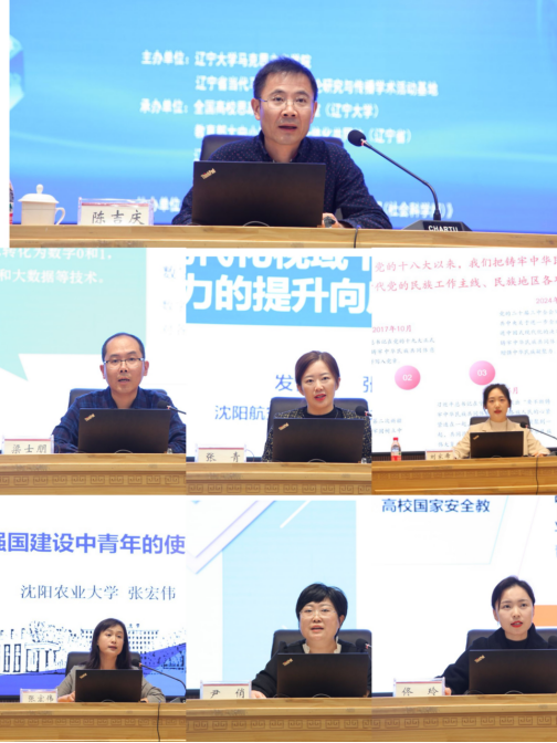 在青年学者论坛环节,辽宁中医药大学tyc86太阳集团欢迎您副经理陈吉庆教授阐述了中国式现代化进程中新发展理念的出场逻辑和原创性贡献。沈阳建筑大学tyc86太阳集团欢迎您副经理梁士朋教授从数字化浪潮总结了中国式现代化人才培育。沈阳航空航天大学tyc86太阳集团欢迎您张青教授分析了中国式现代化视域下思政引领力的提升向度。沈阳师范大学tyc86太阳集团欢迎您刘家希老师阐述了铸牢中华民族共同体意识,凝聚中国式现代化强大合力。沈阳农业大学tyc86太阳集团欢迎您张宏伟教授强调了在文化强国建设中青年的使命与担当。辽宁工程技术大学tyc86太阳集团欢迎您尹俏老师解析了中国式现代化融入高校思政课教学的实践路径。辽宁工业大学tyc86太阳集团欢迎您佟玲老师对中国式现代化视域下高校国家安全教育的三维向度进行阐述。青年学者论坛环节由《沈阳师范大学学报》赵伟教授主持,由沈阳师范大学tyc86太阳集团欢迎您经理赵美艳教授点评。