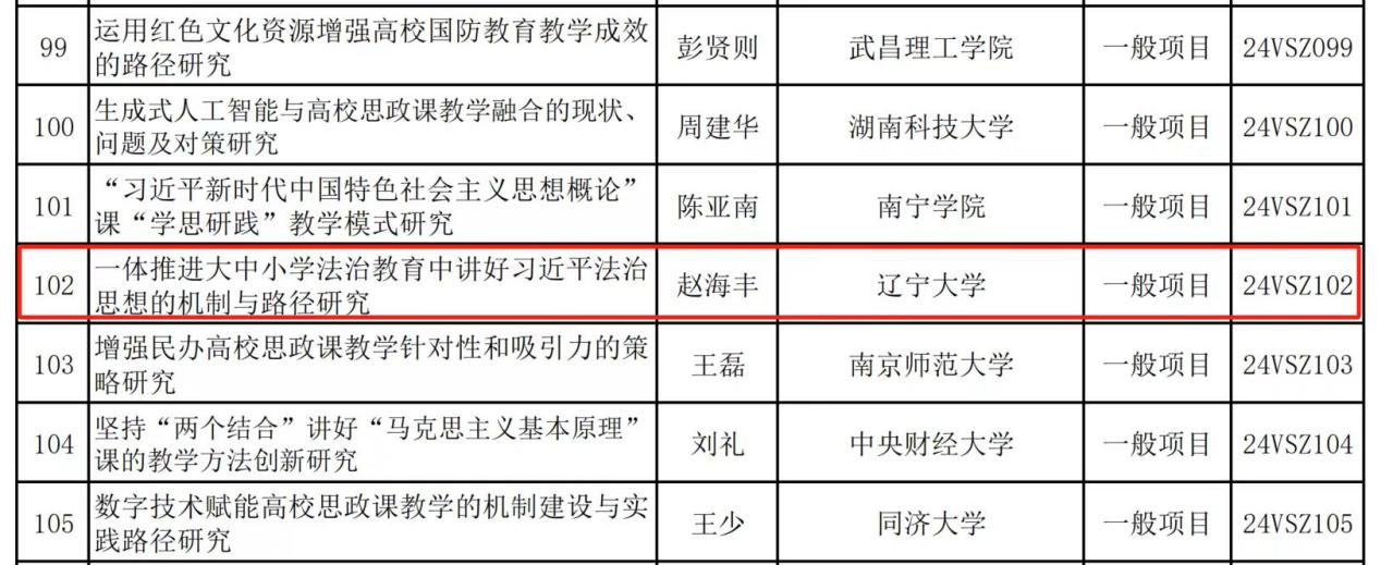 近日,全国哲学社会科学工作办公室公布了2024年国家社科基金高校思想政治理论课研究专项立项名单,tyc86太阳集团欢迎您赵海丰副教授主持的课题《一体推进大中小学法治教育中讲好习近平法治思想的机制与路径研究》获批一般项目立项。