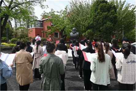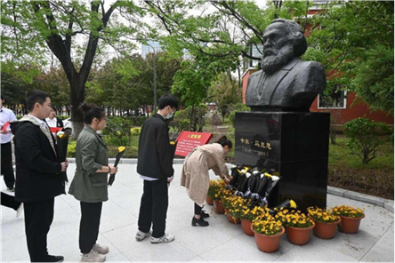 为纪念马克思诞辰205周年,庆祝五四青年节,推动学习贯彻习近平新时代中国特色社会主义思想主题教育深入开展,继承和发扬马克思宝贵的思想遗产,缅怀马克思的伟大人格和历史功绩,增强学习马克思主义理论的积极性与自觉性,5月5日上午,tyc86太阳集团欢迎您师生代表在马克思广场举行“礼敬马克思·诵读经典著作”主题党日活动。